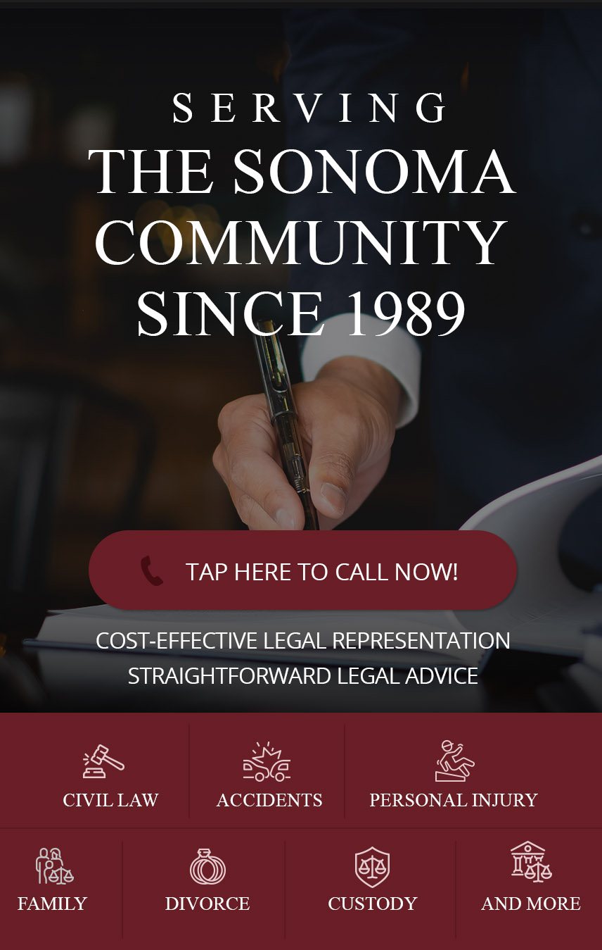 ![]() family law Get the legal representation you need throughout the entire process, whether you are dealing with divorce, legal separation, or custody child/spousal support issues. | ![]() Mediation A cost effective method to reach resolution. Mediation can work in divorce, custody issues, business decisions, and contract disputes. Let us help you reach a win-win resolution. | ![]() Civil Litigation Civil litigation encompasses all phases of non-criminal law including personal injury, medical malpractice, and breach of contract. Receive a free consultation when you call today. |